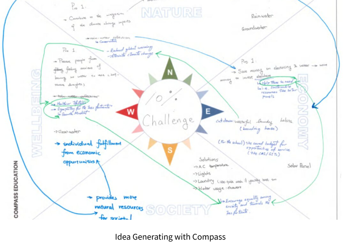 The 10% percent challenge exemplifies the power of grassroots initiatives in addressing pressing environmental issues and promoting sustainable living practices. We utilized the Sustainability Compass to tackle the pressing 10% challenge across aspects of nature, economy, society, and well-being. By rallying individuals and communities around a common goal of reducing electricity and water use by 10% annually, the project demonstrates that small changes can yield significant results in the journey towards a more sustainable and resilient future for generations to come.
